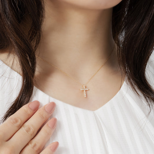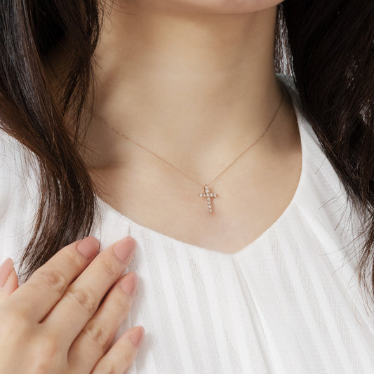 ダイヤモンドネックレス 11石 0.5ct クロス K18PG ピンクゴールド