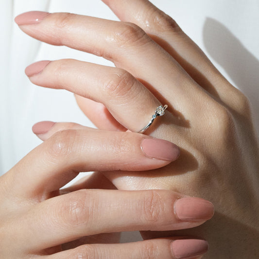 アイスブルーダイヤモンドリング 0.1ct-up PT900 プラチナ 6本爪留め アイスブルーダイヤ2石