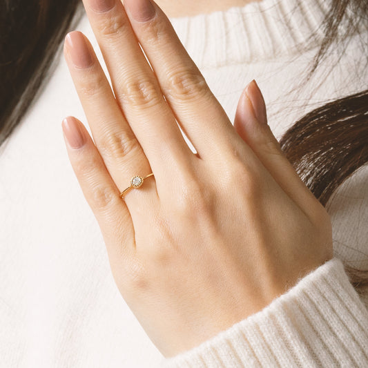 ダイヤモンドリング 1石 0.03ct ミル打ち K18YG イエローゴールド