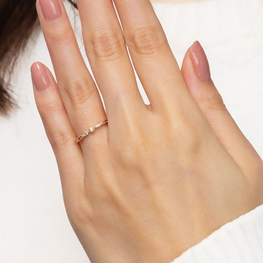 ダイヤモンドリング 3石 0.04ct ミル打ち K10PG ピンクゴールド