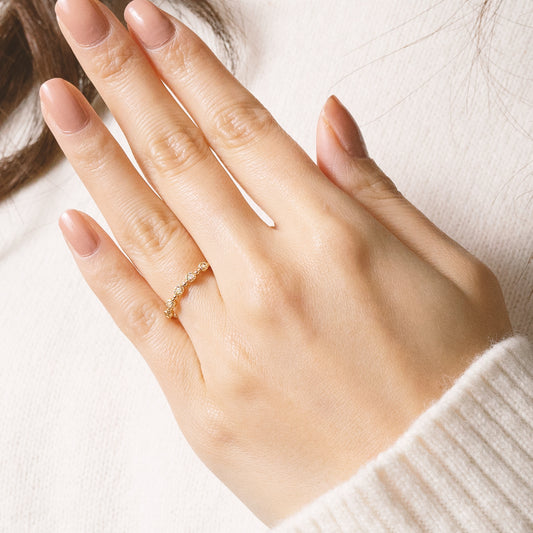 ダイヤモンドリング 5石 0.07ct ミル打ち K18YG イエローゴールド