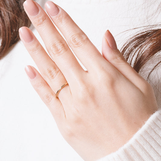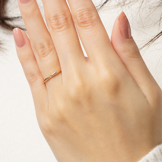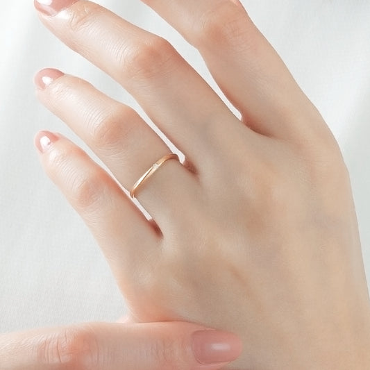 ダイヤモンドリング 1石 0.01ct ウェーブライン 細身 K10PG ピンクゴールド