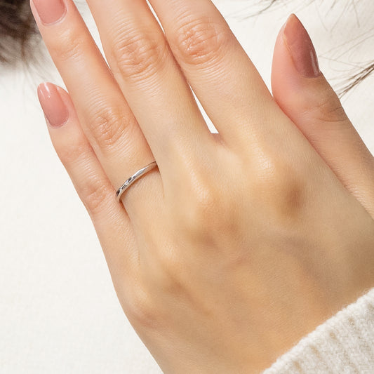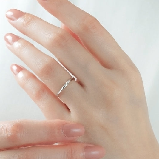 ダイヤモンドリング 1石 0.01ct ウェーブライン 細身 K10WG ホワイトゴールド