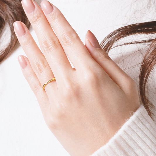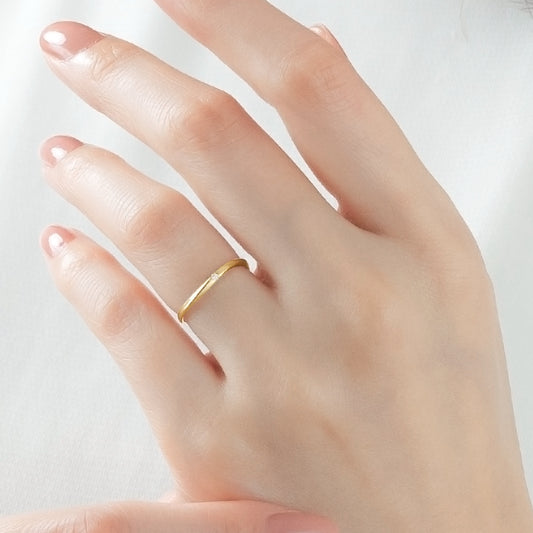 ダイヤモンドリング 1石 0.01ct ウェーブライン 細身 K10YG イエローゴールド