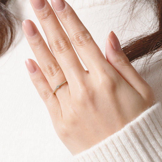 ダイヤモンドリング 1石 0.03ct ミル打ち K18YG イエローゴールド
