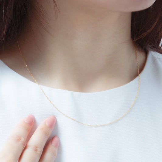 18金ゴールド(K18YG)を採用した定番で美しいデザインのベネチアンチェーンのネックレス。シンプルなデザインなのでフォーマルやビジネスシーン、カジュアルまでご使用頂けます。お持ちのネックレスとの重ね着けや、お手元のペンダントトップの替え用チェーンとしてもオススメ。